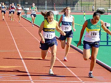 | Mary Ewanich (Cornwall) finishes strongly to win over Jessica Lister (South Jefferson HS) and Karisa Heisler (Lansing HS) |