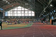 finish line (the entire surface was replaced in early 2001). Barton Hall contains a throwing cage with a cement circle and crusher dust landing sector surrounded by a 25-foot high chain link fence ... The interior of the track has a Recaflex runway for the pole vault, two long and triple jump pits and multiple high jump areas. The permanent seating capacity is reported as 4800 ... however, that probably include a section of roll-out bleachers (similar to high school gyms) located near first-turn that is not totally usable for track meets. |