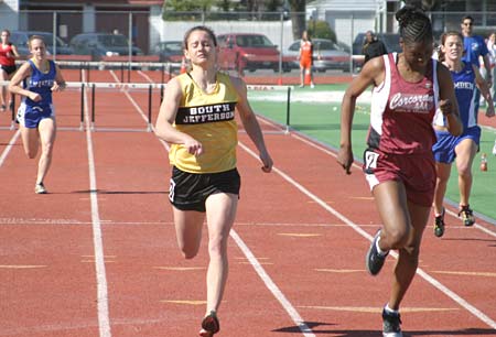 | 400 Meter Hurdles ... Lillian Daniels (Corcoran) edges Jessica Lister (S Jeff) ... Jackie Karboski (Camden, lane 1) and Kayleigh Wheeless (Westhill, lane 4) |