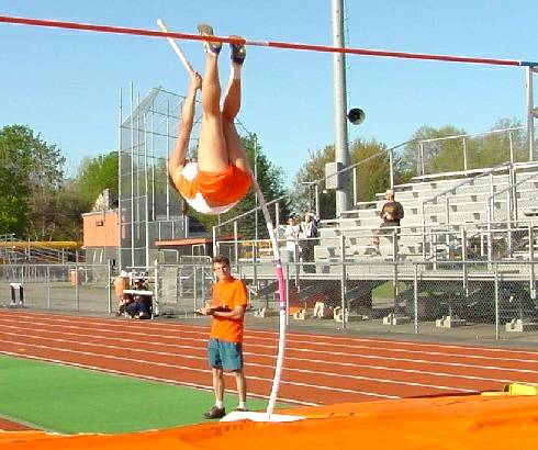 Ginelle Michaels clearing 9' 0" in pole vault (the winning height) ... Ginelle is the sectional leader at 10' 3"