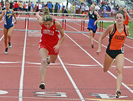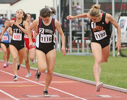 800 Meters (Div 1) ... Kristy Longman (Sayville, right) edges Sarah McCurdy (Bay Shore)